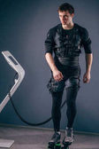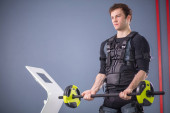 Człowiek pracy treningu Ems z Brzana zbliżenie, moc poza