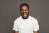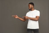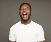 Czarny człowiek wyrażania gniewu, uczucie wściekły, krzycząc: