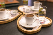 Nalewanie kawy tureckiej podawane z wody w zasobniku.