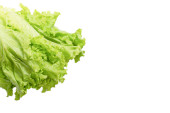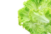 Liść sałaty na białym talerzu. Widok z góry. Na białym tle