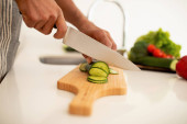 Ogórek cięcia kobieta na widok boczny świeże sałatki