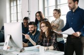 Zdjęcie młodych architektów atrakcyjne dyskusji w biurze
