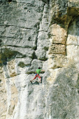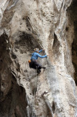 Wspinaczki w Turcji. Facet wspina się na trasie. Zdjęcie z