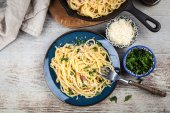 Zdjęcie "Spaghetti carbonara z jajkiem i pancetta" może być wykorzystywane do celów osobistych i komercyjnych zgodnie z warunkami zakupionej licencji Royalty-free. Obraz jest dostępny do pobrania w jakości wysokiej rozdzielczości do 5760x3840.