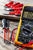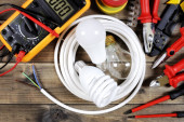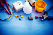Zdjęcie "Widok z góry pracy narzędzi i komponentów elektrycznych systemu na rustykalne drewniane tła" może być wykorzystywane do celów osobistych i komercyjnych zgodnie z warunkami zakupionej licencji Royalty-free. Obraz jest dostępny do pobrania w jakości wysokiej rozdzielczości do 5760x3840.