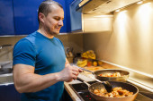 Zdjęcie "Człowiek, gotowanie w domu tajski przepis na Skrzydełka kurczaka" może być wykorzystywane do celów osobistych i komercyjnych zgodnie z warunkami zakupionej licencji Royalty-free. Obraz jest dostępny do pobrania w jakości wysokiej rozdzielczości do 5760x3840.