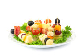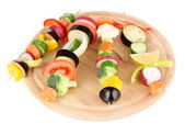 pokrojone warzywa na drewnianych wybiera na białym tle