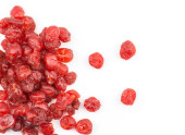 Czerwone wiśnie suche, widok z góry na białym tle na białym tle