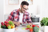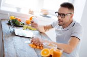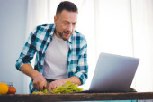 Uważny inteligentny człowiek studiuje blog żywności