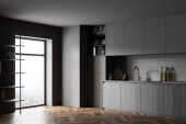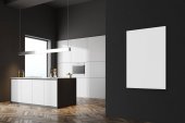 Zdjęcie "Ciemny szary kuchnia wnętrz, plakat" może być wykorzystywane do celów osobistych i komercyjnych zgodnie z warunkami zakupionej licencji Royalty-free. Obraz jest dostępny do pobrania w jakości wysokiej rozdzielczości do 5760x3840.