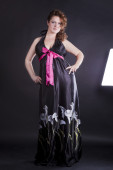 piękna dziewczyna z mody makijaż i fryzurę w długi blac