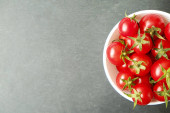 Zdjęcie "świeże czerwone Pomidory czereśniowe w skrzynce z tworzywa sztucznego na pokładzie szary tło" może być wykorzystywane do celów osobistych i komercyjnych zgodnie z warunkami zakupionej licencji Royalty-free. Obraz jest dostępny do pobrania w jakości wysokiej rozdzielczości do 5760x3840.