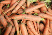 Organicznej marchwi z obszarów wiejskich permakultury w wiklinowym koszu. Ogród w kraju.