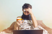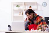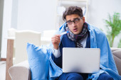Chorzy biznesmeni pracujący w domu z powodu grypy