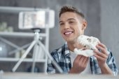 Zdjęcie "Zainspirowany blogger co film o jego dinozaury" może być wykorzystywane do celów osobistych i komercyjnych zgodnie z warunkami zakupionej licencji Royalty-free. Obraz jest dostępny do pobrania w jakości wysokiej rozdzielczości do 5760x3840.