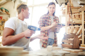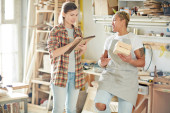 Zdjęcie "Młodych profesjonalnych stolarz robiąc notatki w Notatniku, siedząc w warsztacie" może być wykorzystywane do celów osobistych i komercyjnych zgodnie z warunkami zakupionej licencji Royalty-free. Obraz jest dostępny do pobrania w jakości wysokiej rozdzielczości do 5760x3840.