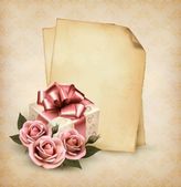 retro tło z pięknym różowym papierze róża i stary. wektor