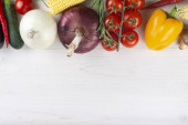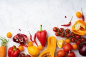 Widok z góry makaron niegotowany i dojrzałych warzyw na serwetki na stół niebieski