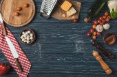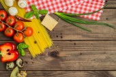 podwyższone widok niegotowane makaronu i warzyw na niebieski tabeli