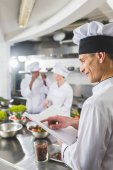 Zdjęcie "Szef kuchni wyświetlone papryka i palming kolega a on krojenia warzyw w restauracji kitchen" może być wykorzystywane do celów osobistych i komercyjnych zgodnie z warunkami zakupionej licencji Royalty-free. Obraz jest dostępny do pobrania w jakości wysokiej rozdzielczości do 5760x3840.