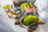 przycięte zdjęcie wielokulturowym kucharzy, cięcia i mycia warzyw w restauracji kitchen