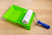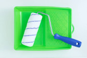 Zdjęcie "Żółte malowanie taca i farba rolki wykonane z włókien syntetycznych o" może być wykorzystywane do celów osobistych i komercyjnych zgodnie z warunkami zakupionej licencji Royalty-free. Obraz jest dostępny do pobrania w jakości wysokiej rozdzielczości do 5760x3840.