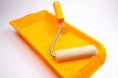 Żółte malowanie taca i farba rolki wykonane z włókien syntetycznych na