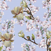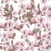 Zdjęcie "Kwiaty wiśni akwareli. Kwiatowy wzór." może być wykorzystywane do celów osobistych i komercyjnych zgodnie z warunkami zakupionej licencji Royalty-free. Obraz jest dostępny do pobrania w jakości wysokiej rozdzielczości do 5760x3840.
