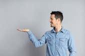 Zdjęcie "Wesoły, młody człowiek wyświetlone miejsce." może być wykorzystywane do celów osobistych i komercyjnych zgodnie z warunkami zakupionej licencji Royalty-free. Obraz jest dostępny do pobrania w jakości wysokiej rozdzielczości do 5760x3840.