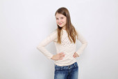 Obraz z piękny emocjonalny kaukaski nastolatków dziewczyna