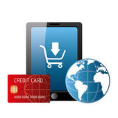 komputer typu Tablet, zapłaty za towar w magazynie mediów. komputer typu Tablet