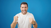Zdjęcie "Szczęśliwy człowiek wyświetlone biceps." może być wykorzystywane do celów osobistych i komercyjnych zgodnie z warunkami zakupionej licencji Royalty-free. Obraz jest dostępny do pobrania w jakości wysokiej rozdzielczości do 5760x3840.