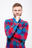Przemyślane mężczyzna na białym tle nad białym tle