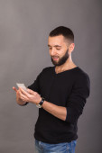 Zdjęcie "Wesoły człowiek, rozmowy przez telefon komórkowy." może być wykorzystywane do celów osobistych i komercyjnych zgodnie z warunkami zakupionej licencji Royalty-free. Obraz jest dostępny do pobrania w jakości wysokiej rozdzielczości do 5760x3840.