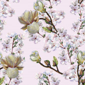 Zdjęcie "Kwiaty wiśni akwareli. Kwiatowy wzór." może być wykorzystywane do celów osobistych i komercyjnych zgodnie z warunkami zakupionej licencji Royalty-free. Obraz jest dostępny do pobrania w jakości wysokiej rozdzielczości do 5760x3840.