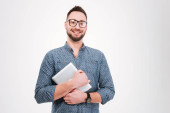 Zdjęcie "Wesoły biznesmen wyświetlone schowka." może być wykorzystywane do celów osobistych i komercyjnych zgodnie z warunkami zakupionej licencji Royalty-free. Obraz jest dostępny do pobrania w jakości wysokiej rozdzielczości do 5760x3840.