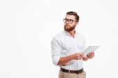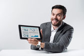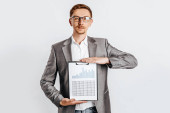 Zdjęcie "Przystojny biznesmen wyświetlone schowka." może być wykorzystywane do celów osobistych i komercyjnych zgodnie z warunkami zakupionej licencji Royalty-free. Obraz jest dostępny do pobrania w jakości wysokiej rozdzielczości do 5760x3840.