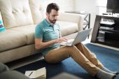 Zdjęcie "Młody biały człowiek leży na kanapie, pisanie na swój komputer przenośny" może być wykorzystywane do celów osobistych i komercyjnych zgodnie z warunkami zakupionej licencji Royalty-free. Obraz jest dostępny do pobrania w jakości wysokiej rozdzielczości do 5760x3840.