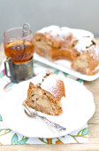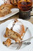 Szarlotka cynamon whisky i herbaty w szkło i antic posiadacz szkła