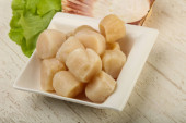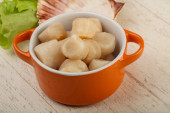 Surowe przegrzebki stos w misce gotowy do gotowania