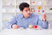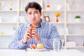 Mężczyzna na diecie czeka na jedzenie w restauracji