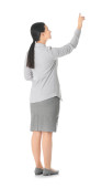 Trener biznesu, wyjaśniając seminarium na białym tle