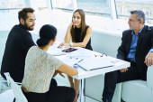 Zdjęcie "Sukces właściciele spółki rozmawia na stół konferencyjny z partnerami biznesowymi, sprawdzanie szczegółów zamówienia. Liderów korporacyjnych, w konsultacji ze sobą na temat uruchamiania projektu wymiany pomysłów i rozwiązań" może być wykorzystywane do celów osobistych i komercyjnych zgodnie z warunkami zakupionej licencji Royalty-free. Obraz jest dostępny do pobrania w jakości wysokiej rozdzielczości do 5760x3840.