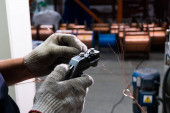 Zdjęcie "Lakierowanie proszkowe elementów metalowych. Kobieta w strój ochronny spraye farby proszkowej z pistoletu na wyroby metalowe" może być wykorzystywane do celów osobistych i komercyjnych zgodnie z warunkami zakupionej licencji Royalty-free. Obraz jest dostępny do pobrania w jakości wysokiej rozdzielczości do 5760x3840.