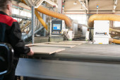 Operator pracy cięcia i gięcia blach przez precyzyjne blach ZAGINARKI, cnc sterowanie blach ZAGINARKI w fabryce