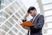 Zdjęcie "Przemyślane dyrektor finansowy, robiąc notatki wartości budżetu, siedząc przy stole na świeżym powietrzu, na miejskich ustawienie, zamyślony biznesmen zdziwiony piśmie w Notatniku, analizowanie informacji w trakcie przerwa na kawę w mieście" może być wykorzystywane do celów osobistych i komercyjnych zgodnie z warunkami zakupionej licencji Royalty-free. Obraz jest dostępny do pobrania w jakości wysokiej rozdzielczości do 5760x3840.