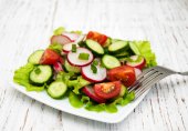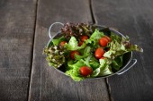 Zdjęcie "sałatką ze świeżych warzyw na drewniane tła." może być wykorzystywane do celów osobistych i komercyjnych zgodnie z warunkami zakupionej licencji Royalty-free. Obraz jest dostępny do pobrania w jakości wysokiej rozdzielczości do 5760x3840.