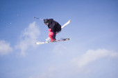 Wizerunek sportowca hełmie z snowboard skoki w snowy resort