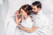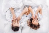 Zdjęcie "Młoda para spanie w łóżku razem, ogólny widok" może być wykorzystywane do celów osobistych i komercyjnych zgodnie z warunkami zakupionej licencji Royalty-free. Obraz jest dostępny do pobrania w jakości wysokiej rozdzielczości do 5760x3840.