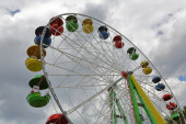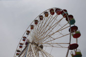 Diabelski Młyn. Diabelski w parku miejskim. Miejsca siedzące dla pasażerów na diabelski